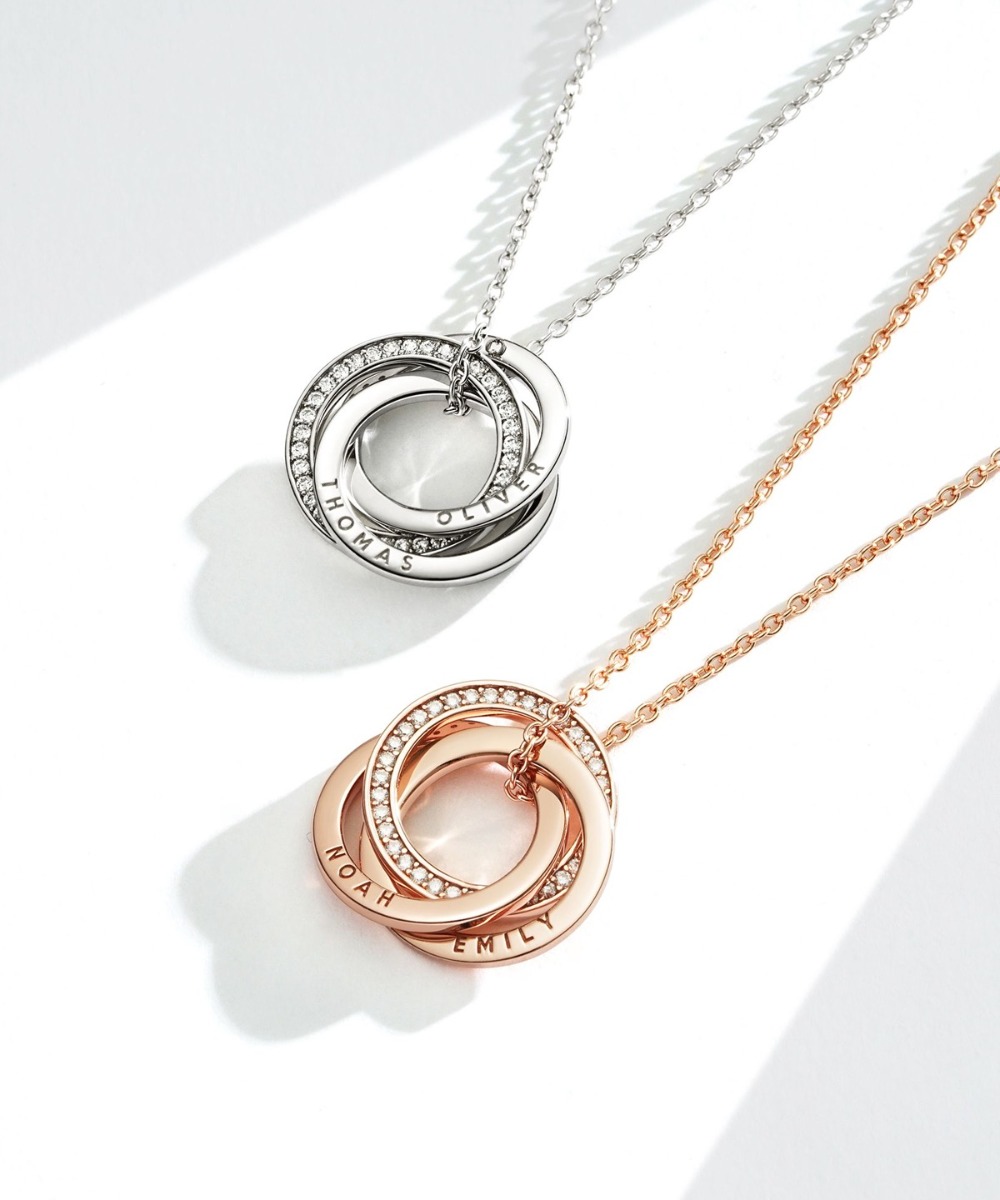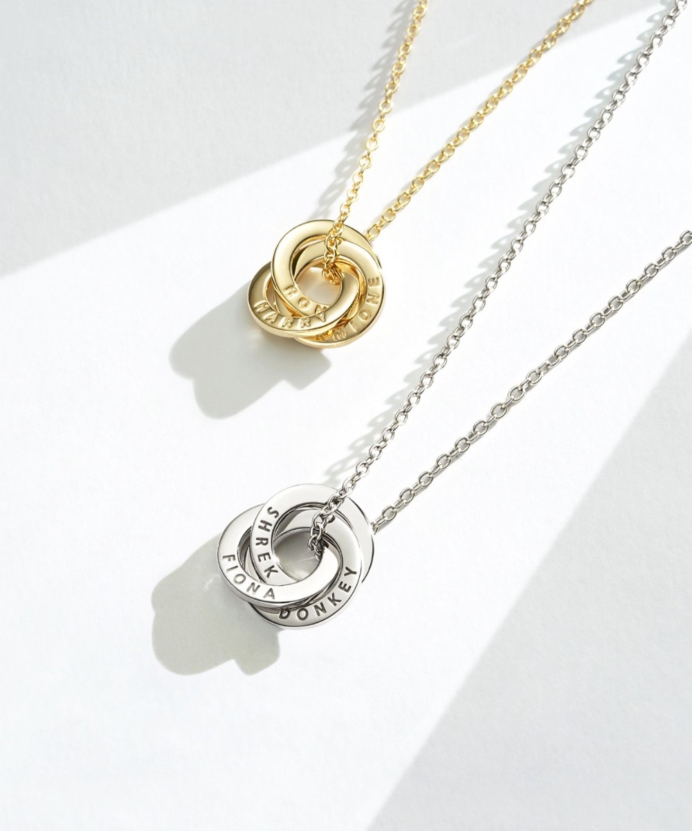 Personalised Interlocking Triple Brilliance Circles Necklace in Sterling Silver