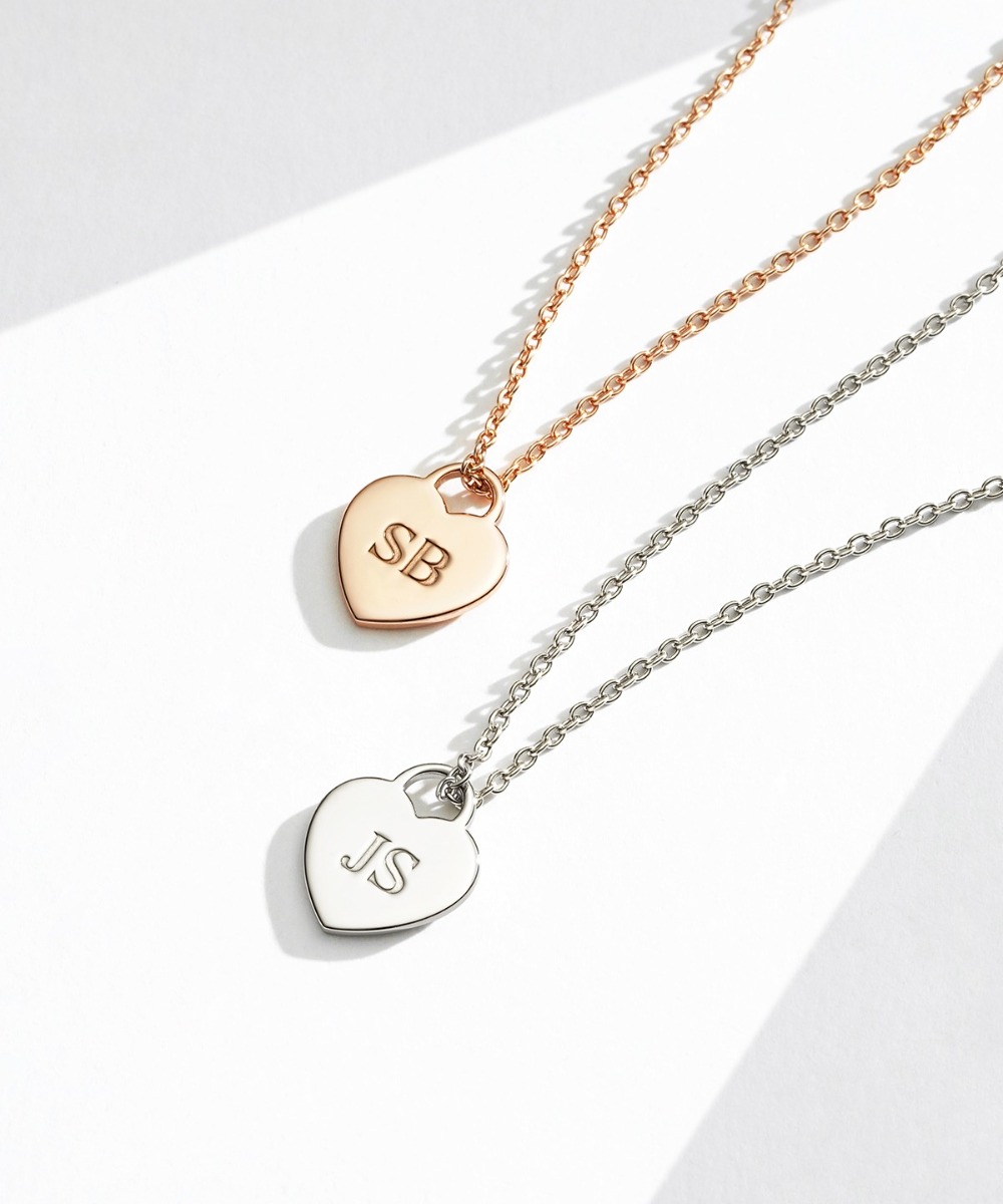 Personalised Heart Plate Necklace in Sterling Silver