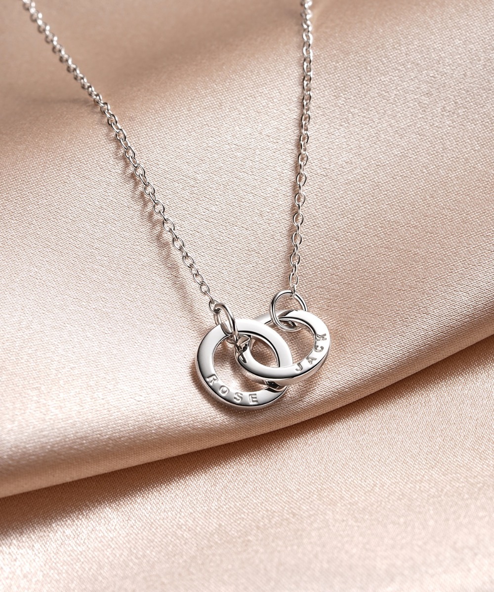 Personalised Interlocking Mini Double Circles Necklace in Sterling Silver